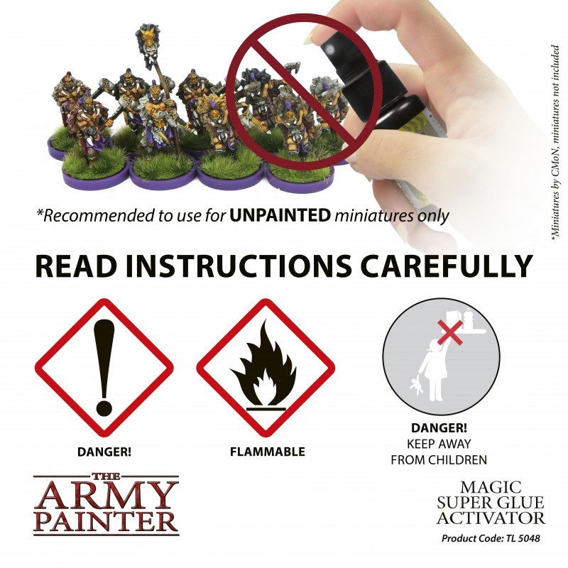 Lipiciului supeglue ii ia aproximativ 30 de secunde pana sa lipeasca, dar cu ajutorul activatorului de la Army Painter, lipitura este instanta. Contine peste 150 de pufuri, in 20 ml. Pentru legaturi cat mai puternice folositi pe miniaturile nevopsite.