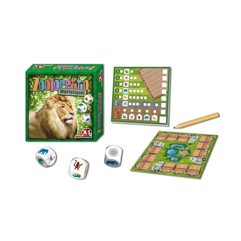 Iubitul joc de familie Zooloretto a primit o varianta cu zaruri. Mai mic si mai usor de impachetat este rapid, simplu si distractiv. Jucatorii fie dau cu zarurile si populeaza camioanele cu animel sau pot lua un camion si aduce animalele in gradina lor zoologica. Scorul final se tine pe fisele speciale unde se bifeaza animalele din gradina zoologica dar si diferitele bonusuri pe care jucatorii le pot primi. Atentie mare sa nu suprapopulati gradina zoologica pentru ca veti fi penalizati.